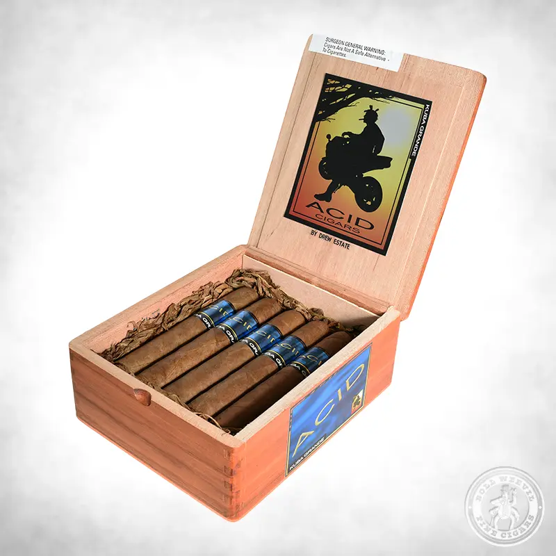 The Drew Estate Acid Blue Cigar line holds within it the cigars most widely desired by Acid aficionados. Names like Kuba Kuba, Blondie, and 1400cc are all mainstays with their mellow rich flavors, sweet tastes and captivating aromas.