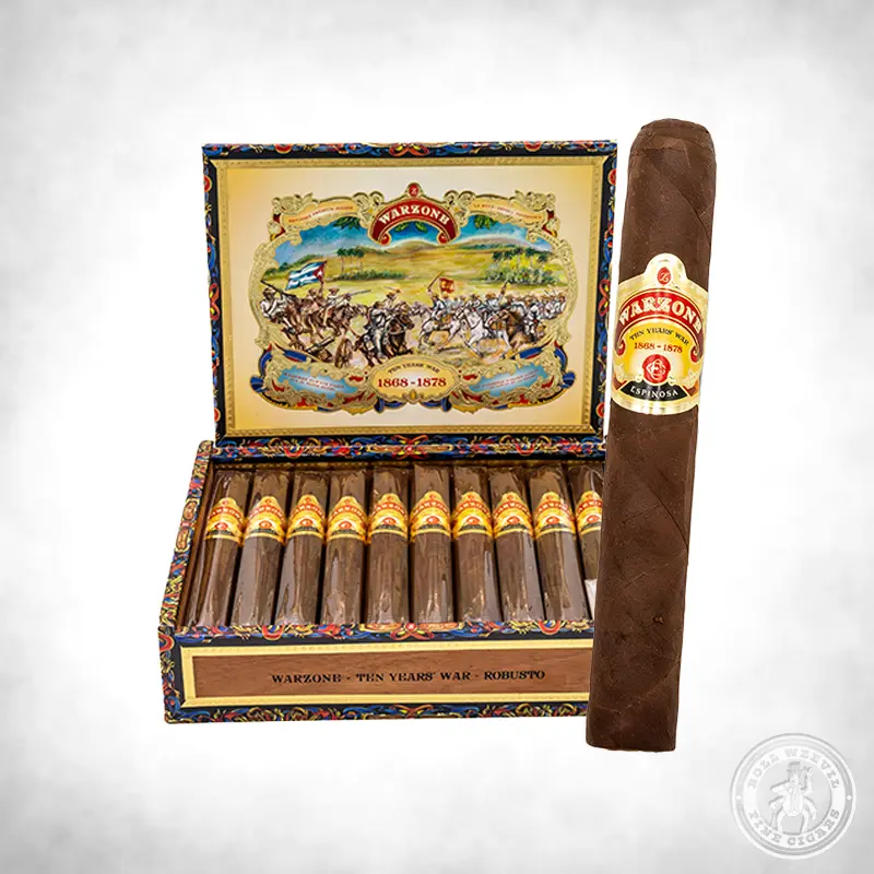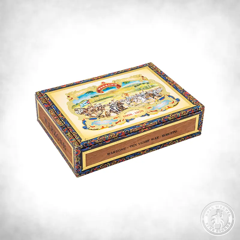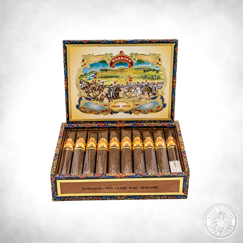 These cigars get their name from the Ten Years’ War (also known as the Great War). This decade-long war (1868–1878) was part of the Cuban uprising to gain independence from Spain. The rebellion was led, in part, by Cuban-born planters. The artwork on the box tastefully depicts one of the war’s battles.